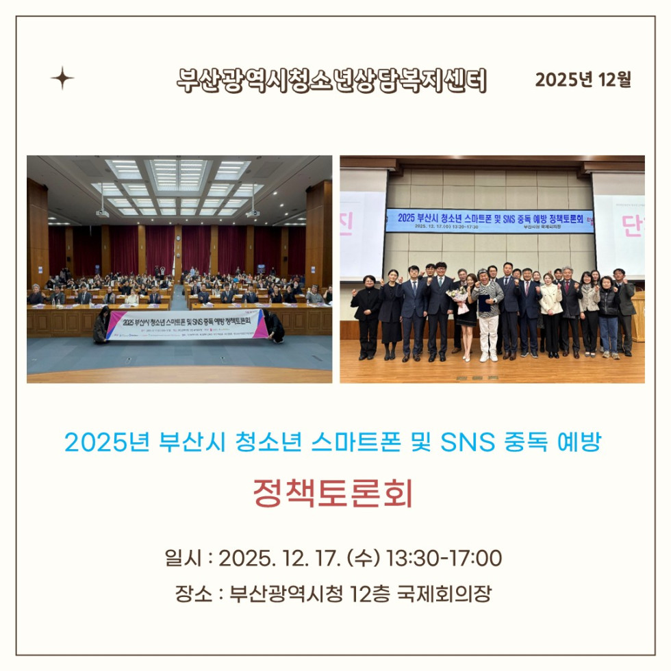[12월] 2025년 부산시 청소년 스마트폰 및 SNS 중독 예방을 위한 정책토론회